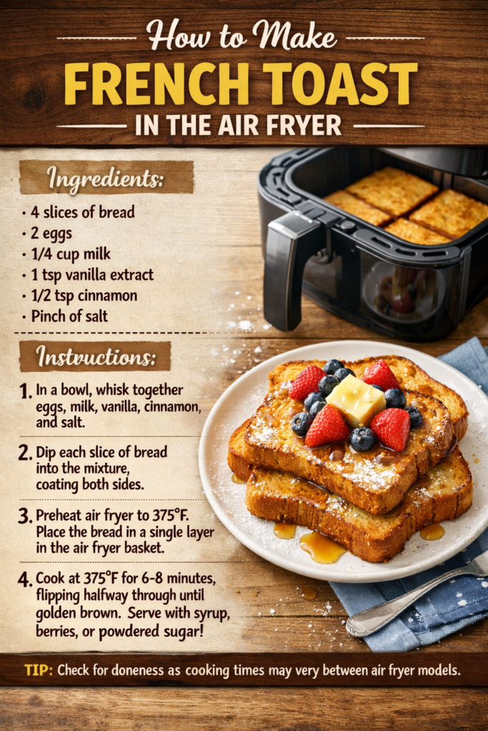 If you’ve ever wanted a quicker, less messy way to make French toast, the air fryer might just become your new best friend. It gives you that perfect golden crisp on the outside while keeping the inside soft and fluffy—without needing a frying pan or standing over the stove.